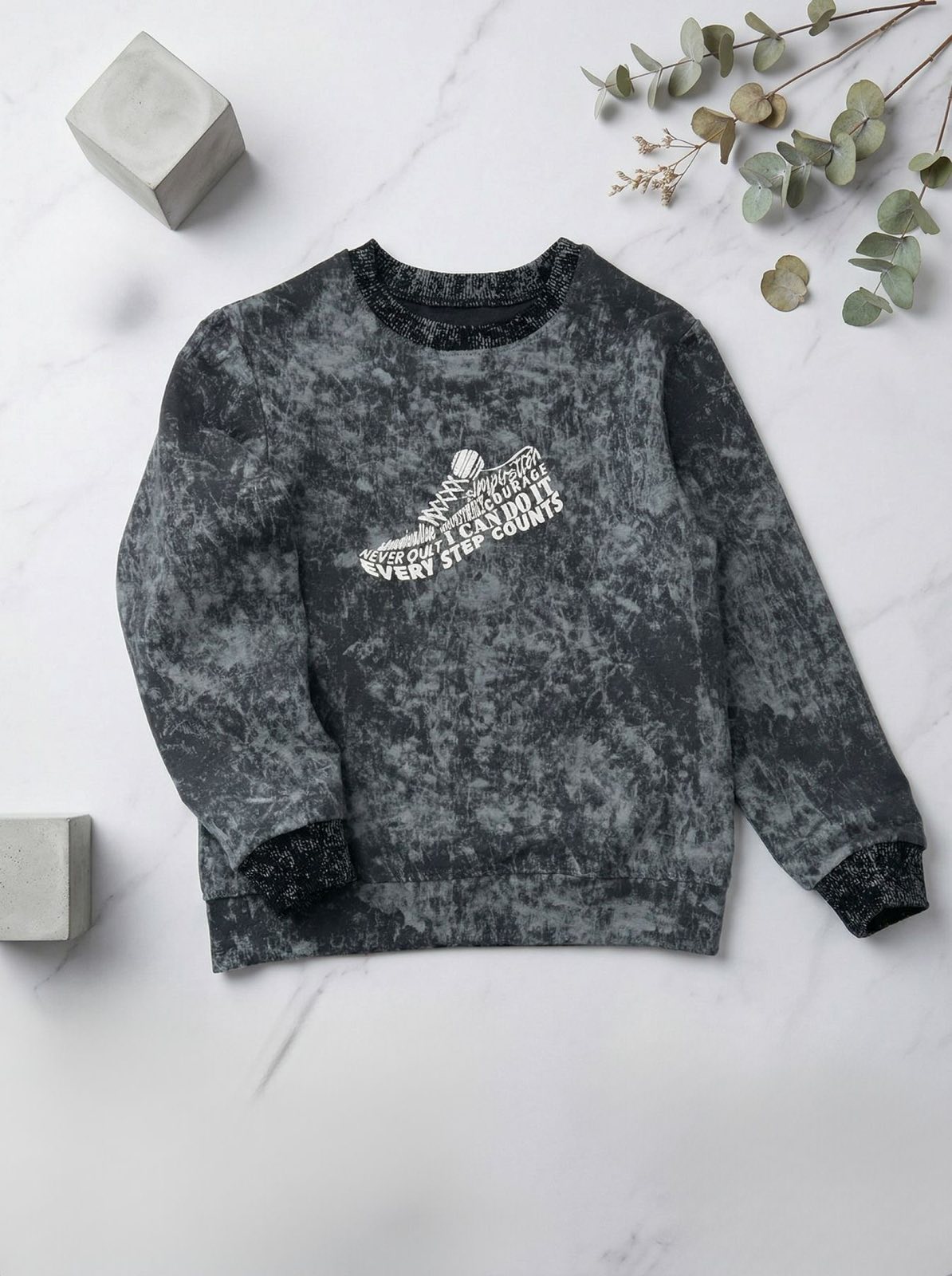 Джемпер «Варка» графіт 2.нитка/петля -преміальна, бавовняна, мʼяка, дуже приємна, крутезна тканина✅ трендовий -ефект варки, декоровано стильовим принтом, класичний крій, горловина та манжети з рубчика 140,146,152,158