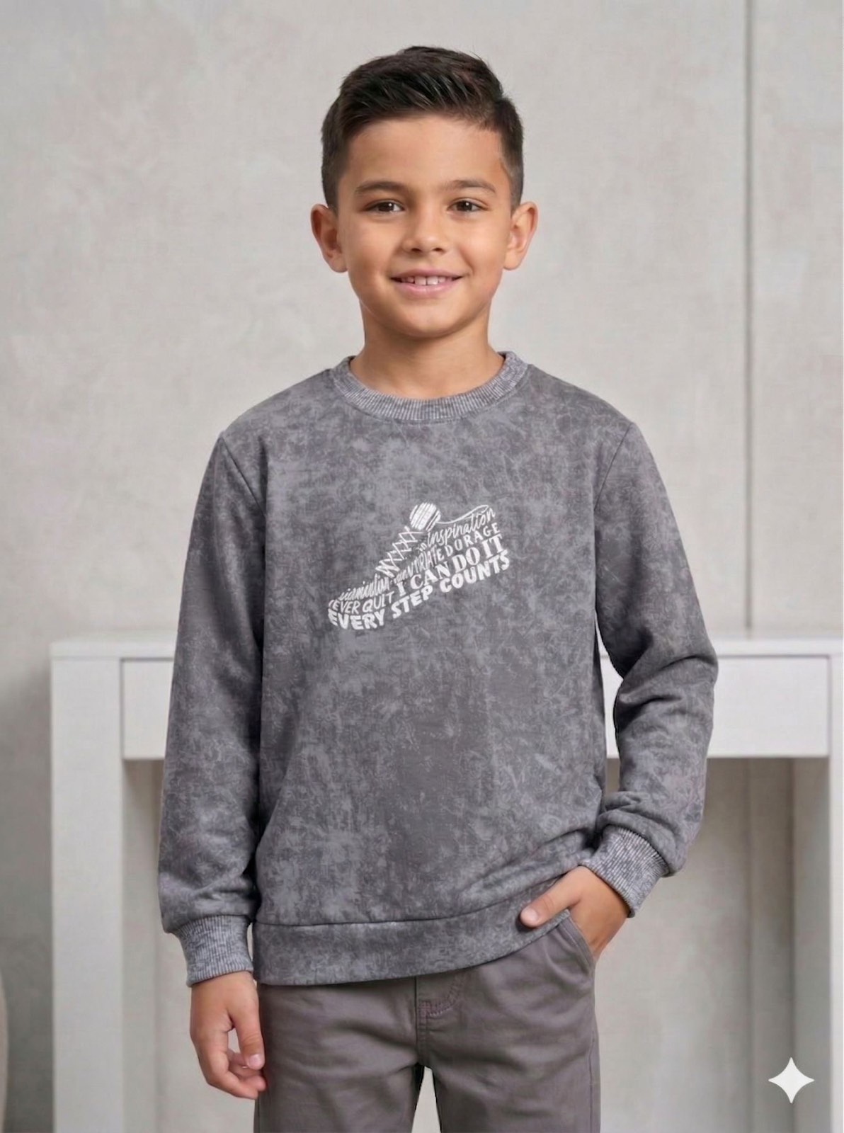 Джемпер «Варка» сірий 🧵 2.нитка/петля -преміальна, бавовняна, мʼяка, дуже приємна, крутезна тканина✅ трендовий -ефект варки, декоровано стильовим принтом, класичний крій, горловина та манжети з рубчика👍📏 140,146,152,158