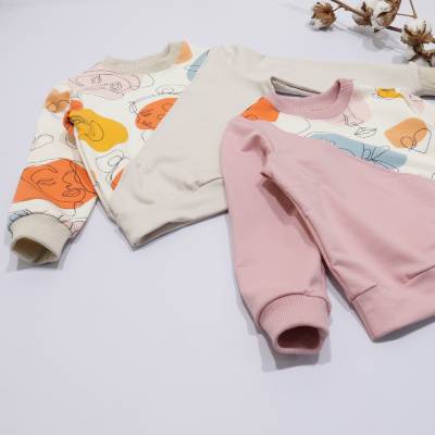 Джемпер “Face” Розміри з 140 до 158 Тканина: 2.нитка/хб Кольори: пудра, таш •преміальна турецька тканина, ізнанка на бавовняній основі; •крутезна, наша нова моделька; •гарне, оригінальне комбінування принта з однотоном; •спинка така ж комбінована як і перід; •якісно оброблена горловина; •дуже класні, рекомендуємо; •повномірні розміри; Розміри 140,146,152,158