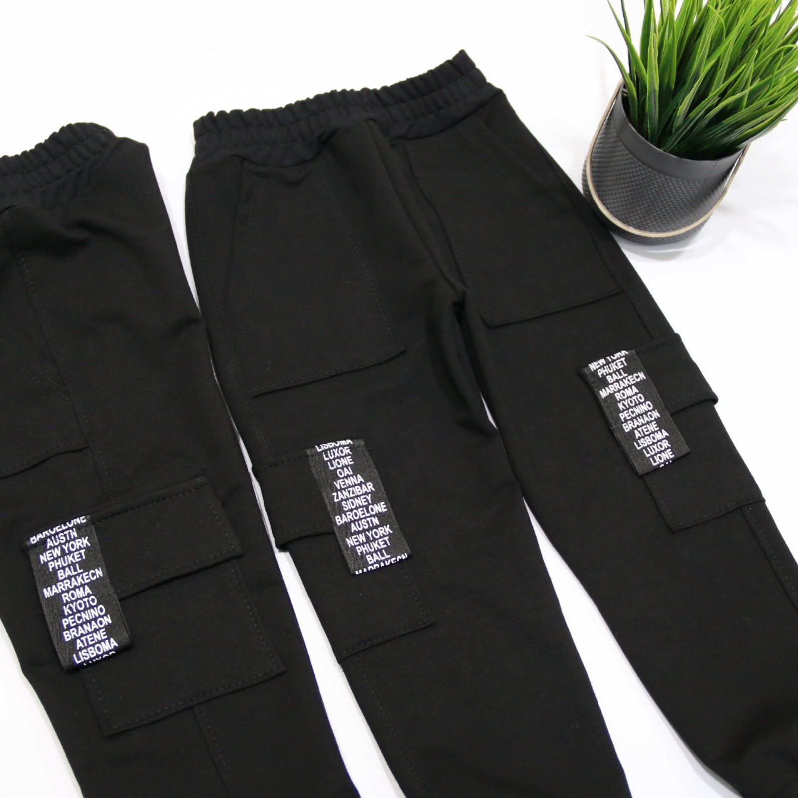 Штани-джогери 2в1 меланж, сірий, чорний преміальна турецька тканина -двонитка/пеньє бокові шви вистрочені з низу утяжки -фіксатори широкий пояс з функціонуючим шнурком трендова моделька 2в1 в стилі джогери-мом унісекс 92,98,104,110