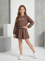 Костюм “Кант” мокко 2.нитка -преміальна, перевірена, турецька тканина ✅ трендовий реглан “кроп-топ” з термо -накатом міу-міу, по низу на резинці з фіксатором, на рукавах та по спідничці стильові канти 140,146,152,158