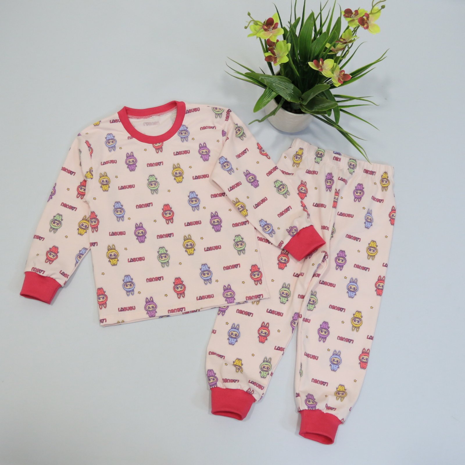 Піжама “Лабубу”🧵преміальна, бавовняна тканина -кулір/пеньє✅ м’яка, ніжна піжамка в трендові Лабубу😍📏 98,104,110,116