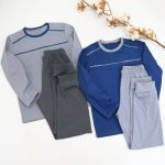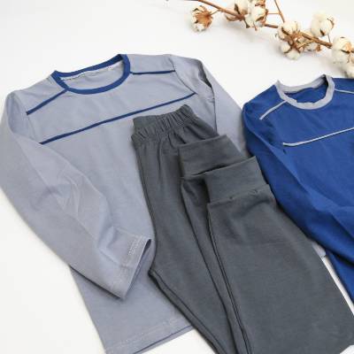 Піжама “індіго, сіра” Розміри з 128 до 158 Тканина: кулір/пеньє Кольори: індіго, сірий •якісна, натуральна тканина; •кофтинка комбінована вставками; •зручні штани, з глибокою посадкою; •повномірні розміри; Розмір 128,134,140,146,152,158