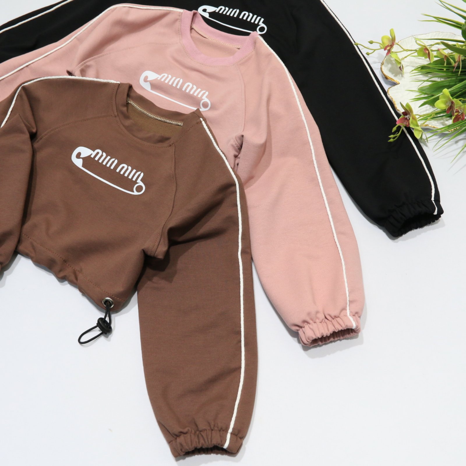 Реглан “Кант” Розміри з 116 до 134 Тканина: двонитка Кольори: чорний, мокко, пудра ✓по низу на резинці з фіксатором, можна робити вільно в стилі -over, або підтягувати в стилі -кроп, що є трендом модниць👍 ✓на рукавах стильні канти; ✓з крутезним термо-накатом міу-міу😍 ✓в тон комбінуються з нашими спідчиками і палаццо “Кант”👍