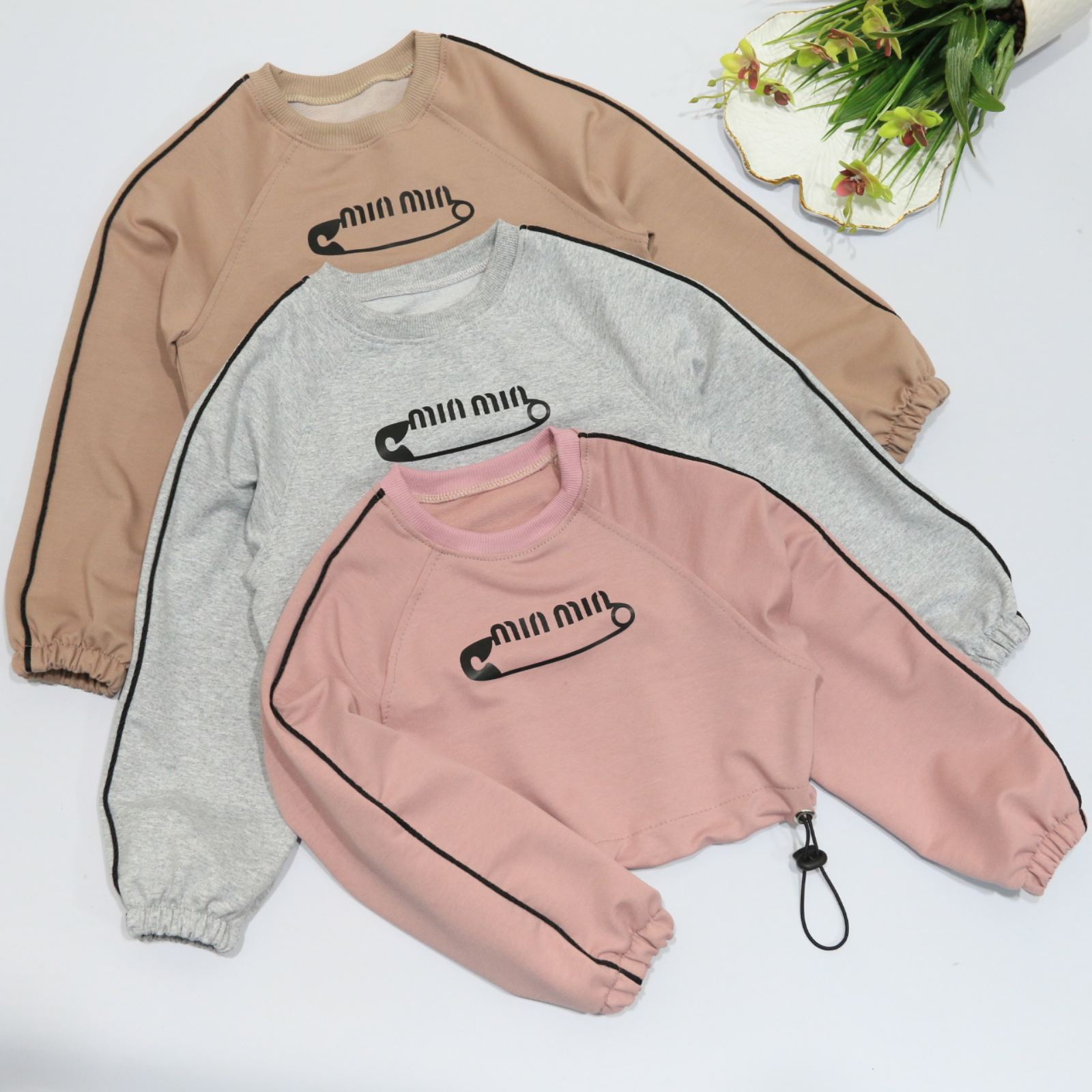 Реглан “Кант” Розміри з 116 до 134 Тканина: двонитка Кольори: чорний, мокко, пудра ✓по низу на резинці з фіксатором, можна робити вільно в стилі -over, або підтягувати в стилі -кроп, що є трендом модниць ✓на рукавах стильні канти; ✓з крутезним термо-накатом міу-міу ✓в тон комбінуються з нашими спідчиками і палаццо “Кант