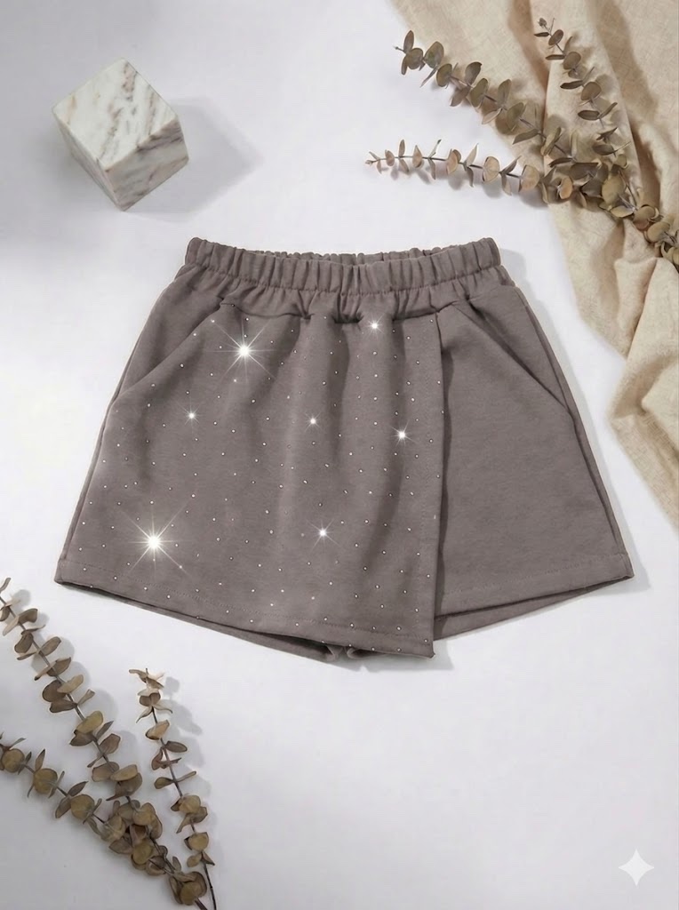 Спідниця-шорти “Стрази” таш🧵 2.нитка/пеньє -люксова, турецька тканина з фабричним нанесенням стразів ✅ стильна моделька, з широким поясом, з карманами, зручна посадка та довжина, ідеально стилізуються в костюми з нашими джемперами📏 116,122,128,134