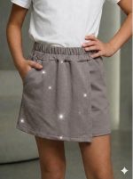 Спідниця-шорти “Стрази” таш🧵 2.нитка/пеньє -люксова, турецька тканина з фабричним нанесенням стразів ✅ стильна моделька, з широким поясом, з карманами, зручна посадка та довжина, ідеально стилізуються в костюми з нашими джемперами📏 140,146,152,158