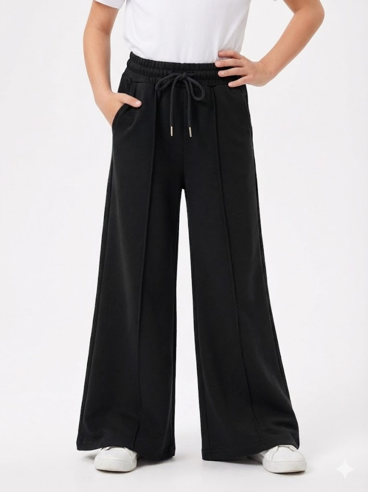 Палаццо «стріли» чорні двонитка/пеньє -якісна, перевірена тканина✅ з ідеальною посадкою та кльошем від бедра, широкий пояс з функціонуючим шнурком, з карманами та вистрочками-стрілами 116,122,128,134